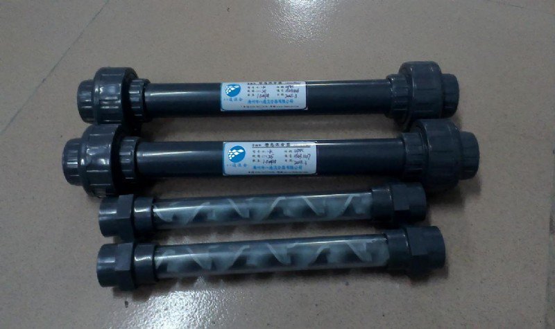 圖片上透明材料靜態混合器材料:QJ-SK型,透明PVC外殼+316L不銹鋼。